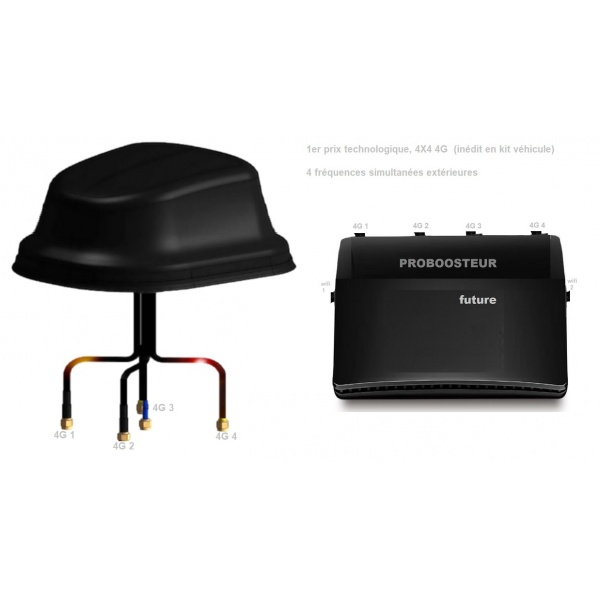 Kit 2026 Proboosteur 4G Future 2 SIM 4G CAT16+ antenne requin noire 4X4 rabaissée, technologie 4 fréquences ext., 1,5Mètres